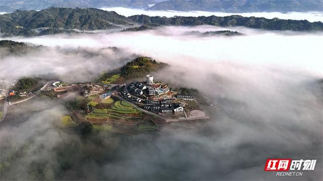 这是武陵山土产货突出的放肆。平流雾如星河流泻,顺着山谷的沟壑奔涌而来,又在山坳间缓慢千里淀,化作一派无际的云涛雪浪。连绵的青山成了浮在海上的岛屿,峰峦隐现,林影绰约,只余下黛色的详细,在雾霭中晕开层层浅深。阿巴砦就坐落在这云涛之巅,白墙黛瓦的吊脚楼依山就势,零散有致地铺展在山岗上,那座绚丽性的银冠塔楼,如一枚镌刻着白族图腾的银饰,兀立在云表,成了这片瑶池最醒想象坐标。