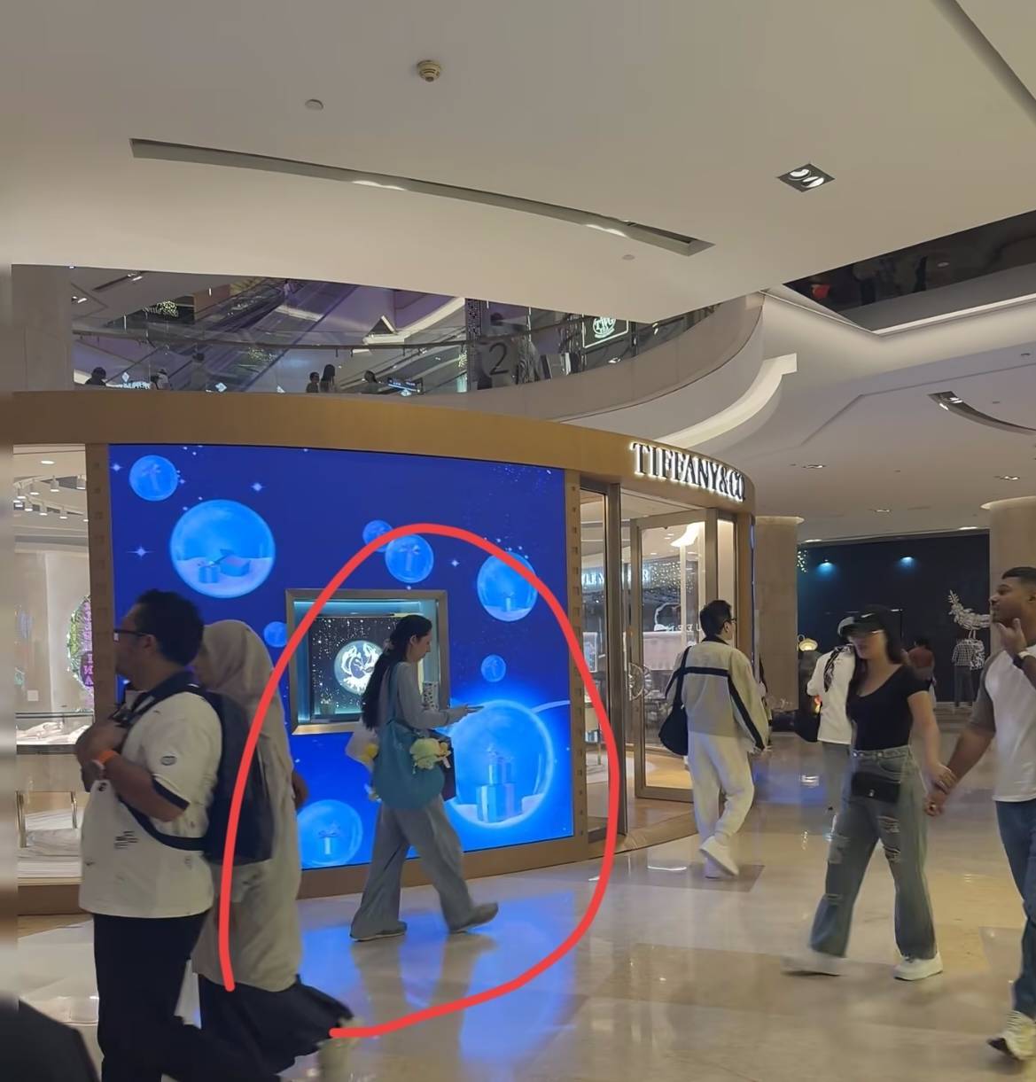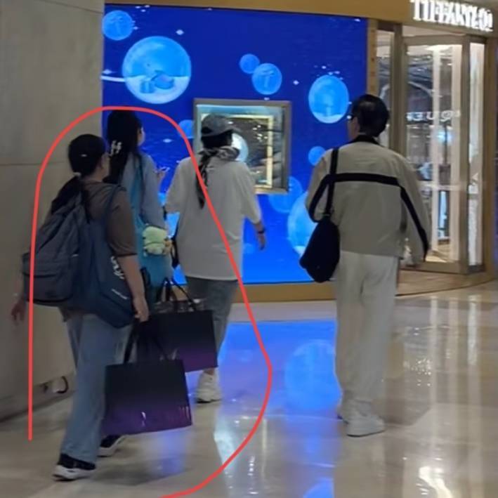 跟在向太死后的即是郭碧婷,她身上背了一个蓝色的包包,挂着玩偶,手里还拎着一个玄色大包,看起来东西确切蛮多的。