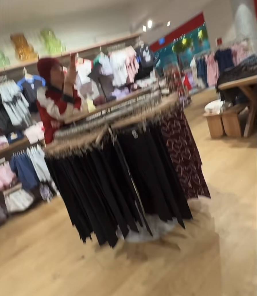 背面郭碧婷带孩子逛街看衣服的时代,向佐就趴在衣架子上方玩手机,还挺泄气的。