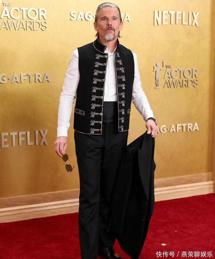 伊桑·霍克看起来颇具戏剧感,仿佛是画虎不成去插足军乐队饰演。 这位演员身着迪奥出席受奖仪式,他凭借在《蓝月》中的出色饰演入围了最好男主角奖。“他今晚几乎像个海盗,”一位网友驳倒说念,另一位网友则写说念:“伊桑看起来就像个十足的冒险家。”#4、大通英菲尼迪