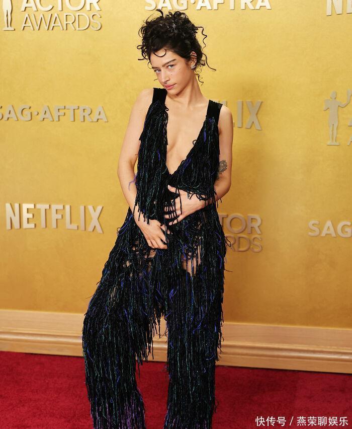 詹娜·奥尔特加 (Jenna Ortega) 身着克里斯蒂安·考恩 (Christian Cowan) 假想的象牙色破洞睡裙亮相红毯,将寝衣风演绎得长篇大论。这位女演员凭借在《星期三》中的出色推崇,入围了笑剧类剧集最好女演员奖。她这身寝衣风的装璜,肩部垂着蕾丝吊带,裙摆则是毛边假想,显得十分凌乱。“寝衣风?”一位网友在驳倒区问说念,另一位则写说念:“又一件破洞裙。”第三位网友问说念:“《僵尸新娘》真东说念主版要上映了吗……?”另一位网友玩笑说念:“我嗅觉我那天晚上也会穿访佛的降服,只不外没破。”还有一位网友暗示: “我不可爱这种格调。”另一位网友也赞同说念:“这可不是什么悦办法格调。”#2、敏迪·卡灵