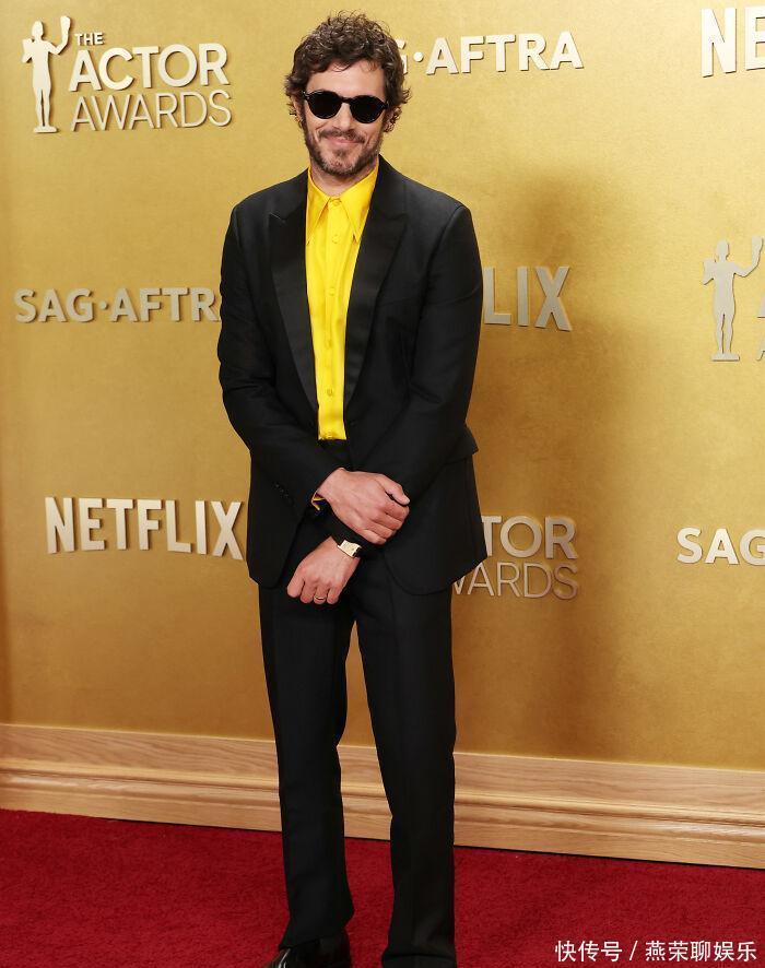亚当·布罗迪那件亮眼的向日葵黄衬衫,一眼就能认出来。这位演员凭借在《无东说念主问津》 (Nobody Wants This)中饰演“性感拉比”一角,第二次得到好意思国演职工会-好意思国电视和播送艺术家集合会(SAG-AFTRA)最好男主角提名。 他入围了笑剧类剧集最好男演员奖,在黄色衬衫外,他身穿一套玄色丝质翻领西装。#14、莎拉·皮金