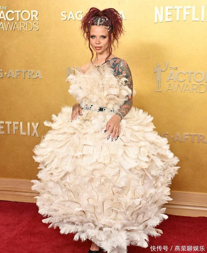 帕克·波西在星光熠熠的受奖仪式红毯上,身着一套访佛寝衣的服装,给东说念主一种“寝衣”的嗅觉。 这位凭借《白莲花》得到提名的女演员,身穿一件Gucci降服,看起来像是用狭窄的雪纺面料制成,并饰有蓬松的玛拉布羽毛。“我爱她,但她的造型师不爱,”一位粉丝驳倒说念,另一位粉丝则说:“看起来像寝衣。”“看起来像一套丽都的寝衣,”还有东说念主传颂说念。“这让我念念起了我的姆妈——她在1973年我表弟的成东说念主礼上穿了一件尽头相似的裙子,”另一位粉丝说说念。“不外,这照实很有老好莱坞的格调。帕克看起来真好意思。我姆妈穿起来也很漂亮。”#8、弗兰·德雷舍