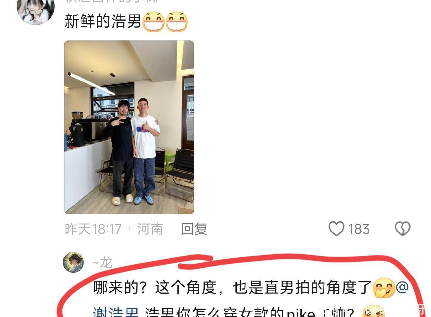 第一个问题即是浩男穿的怜惜衫,浩男在和南农真挚合影时穿的怜惜衫网友发现是女款的,