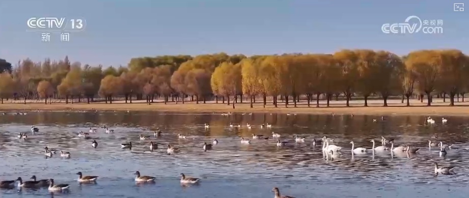 在中国最大的沙漠淡水湖,红碱淖国度级当然保护区内,芦苇金黄、湖水碧蓝、万羽翔集,共同组成一幅象征的生态画卷。监测数据线路,区域内天鹅、鸿雁、赤麻鸭等迁移鸟类数目已达近4万只,迎来年度峰值,比拟往年同时候鸟数目稳步进步。