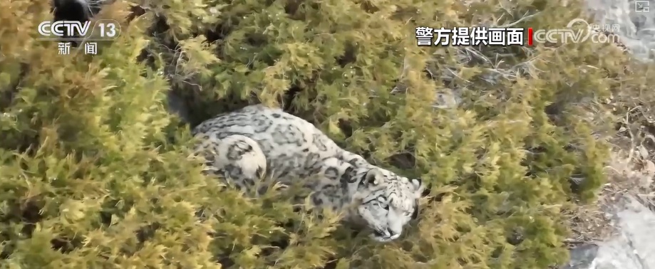 行车纪录仪拍摄到三只雪豹过马路画面