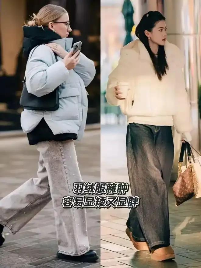要是你聘请一条玄色的紧身裤来搭配上蓬松感的羽绒服,那更为德不卒了。就算你聘请牛仔阔腿裤来搭配上肥美的羽绒服,所有东谈主就像企鹅一样,还会压个子。